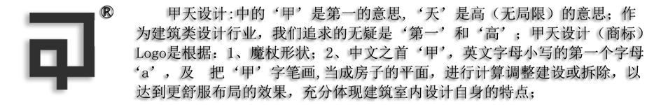 茂名市甲天裝飾設(shè)計(jì)有限公司,簡(jiǎn)稱“甲天設(shè)計(jì)”;原為TATANI(她他你)馬沈青設(shè)計(jì)事務(wù)所;2018年5月31日正式更名為“茂名市甲天裝飾設(shè)計(jì)有限公司”,由國(guó)際注冊(cè)高級(jí)設(shè)計(jì)師、清派風(fēng)水傳人馬沈青先生,引領(lǐng)設(shè)計(jì),公司主要從事建筑設(shè)計(jì)、規(guī)劃設(shè)計(jì)、室內(nèi)設(shè)計(jì)、建筑建設(shè)、裝修安裝、培訓(xùn)等業(yè)務(wù); 旗下品牌: 1、甲天設(shè)計(jì)(茂名市甲天裝飾設(shè)計(jì)有限公司) 地址:廣東省茂名市電白區(qū)水東鎮(zhèn)人民中路7號(hào)(電白區(qū)疾病防預(yù)中心旁),網(wǎng)址:www.genlinyidiao.com.cn,電話0668-5552339;