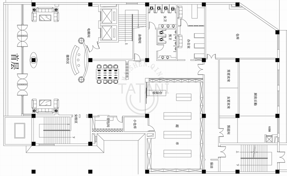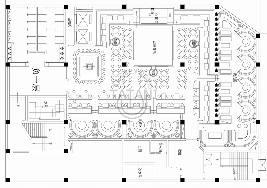 | 中國(guó)現(xiàn)在絕大部分人,因?yàn)楣ぷ骱蜕钪小疅o(wú)聲的’壓力,正處于情感枯寂期;已經(jīng)非煅煉、旅游和安靜的空間可以釋放,所以都要借助強(qiáng)烈刺激性氣氛來(lái)壓制,和熱鬧的人群來(lái)緩解心里的孤單;少數(shù)不喜歡,和不需要熱鬧的人,又多數(shù)喜歡宅在家里;因此氣氛對(duì)于酒吧來(lái)說(shuō)很重要;如何來(lái)體現(xiàn)氣氛,以人的五官六感為例,首先是聽(tīng)覺(jué)和視覺(jué),這兩樣?xùn)|西起到關(guān)鍵的引導(dǎo)作用,一、聽(tīng)覺(jué)主要是聲音,而聲音主要來(lái)源是音響,但聲音不是越高越好,音響的控制和調(diào)節(jié)很重要,在音響配合設(shè)計(jì)的角度上,音響,分為聲音和聲波,1、以聲音為例,一米距離為例,10比0為完全音響遮蓋酒吧客人的正常談話(huà)聲,那5.5比4.5至6比4左右為好,這個(gè)很難以分貝去算,也就是以音響聲音的分布與顧客談話(huà)聲一比一偏高一點(diǎn)為好,最高最好不要超過(guò)8成,否則會(huì)對(duì)顧客的聊天交流造成困擾;2、聲波,聲音主要以介質(zhì)振動(dòng)傳播,強(qiáng)大的聲音會(huì)對(duì)通過(guò)空氣造成聲波或者說(shuō)是聲浪,高強(qiáng)度反復(fù)折射的聲波,會(huì)對(duì)人體產(chǎn)生合圍狀,對(duì)人的心肺產(chǎn)生很大壓力;所以以前設(shè)計(jì)大量使用軟包,就是用來(lái)消減聲浪的反復(fù)作用,而后來(lái)不許用軟包了,就以背后凹凸不平,或者不同的折射造型面作為打散聲波的代替品,不少聲波會(huì)折射以影響,對(duì)消等不能對(duì)人體產(chǎn)生大面積合圍,以減輕對(duì)人體器官直接壓力,這兩點(diǎn)同樣適用于包房設(shè)計(jì)和音響預(yù)選;二、視覺(jué),酒吧和KTV的區(qū)別在于,酒吧是個(gè)復(fù)雜的環(huán)境,為了氣氛顯得熱鬧和人多,設(shè)計(jì)師會(huì)把兩桌的距離按排的很近,可以說(shuō)與鄰桌毫無(wú)關(guān)系的陌生人是背貼背,臂并臂的;這樣做可以讓客人產(chǎn)生置身人群中心的感覺(jué),臺(tái)面上微小的燈光,及自己的受光面,與背影形成了明顯的里面和外面,加上環(huán)境上昏暗閃爍的燈光效果,讓人可以忽略有可能與陌生人對(duì)視尷尬;也可以說(shuō)人意識(shí)中的空間范圍,是由光決定的,而不是以建筑決定的,如你置身伸手不見(jiàn)五指的環(huán)境,你就沒(méi)有空間概念了,給你一條燭光,你的空間就是可見(jiàn)范圍以?xún)?nèi),這范圍當(dāng)然也包括之前照過(guò)的地方;如果有活動(dòng)的不定方向性威脅,那你的空間就只有光看得到的地方;也就是說(shuō)空間范圍,會(huì)因?yàn)槟愕淖⒁饬Ψ秶鴽Q定,而桌面上的酒、水、小食,也有這個(gè)效果,及你熟釆的人,也可以產(chǎn)生空間范圍的影響,而你身邊不熟悉的陌生人,也對(duì)你所以空間范圍出行了擠壓,但這些人和自己一樣各顧各的,相當(dāng)于路人,所以沒(méi)有顧忌性,因?yàn)樯磉叾际恰啡恕,自己的臺(tái)桌,就變成了擠身熱鬧人群中,的一個(gè)小小的空間,而我們?cè)O(shè)計(jì)的臺(tái)都要小,小吃不用多少就會(huì)顯得很滿(mǎn),造成一個(gè)不貴的心理,和朋友擠在一起也變得更加親蜜,玩起來(lái)更加盡興;但因?yàn)殚L(zhǎng)期局限在這小小的空間,過(guò)于注意朋友和周邊的人,會(huì)產(chǎn)生心理壓力,甚至引發(fā)與鄰桌的過(guò)節(jié),所以要有表演和互動(dòng)節(jié)目來(lái)化解分散這個(gè)注意力,讓客人把心留在小小的空間,把注意力可以拉到外面,就算是在人群中對(duì)著臺(tái)上叫喊,旁邊的人也不會(huì)理你,甚至還會(huì)聲援支持你,這樣有朋友相處更好,因?yàn)橥娴谋M興,沒(méi)有壓力,也不貴,所以客人就喜歡來(lái)玩;但必須要有服務(wù)員,可以快速到達(dá),和依臺(tái)點(diǎn)餐的空間,所以設(shè)計(jì)的時(shí)候,還要著重考慮服務(wù)員這個(gè)環(huán)節(jié),而且人員配備是經(jīng)營(yíng)支出的大頭,很多酒吧失敗,就是從設(shè)計(jì)開(kāi)始的;KTV這方面則相對(duì)簡(jiǎn)單很多,但同樣也講究氣氛,但只體現(xiàn)在燈光、音響、和裝飾環(huán)節(jié),而且講究大的空間,因?yàn)橛?jì)低消是由房間大小定的;以下以一個(gè)綜合性的為例子,只不過(guò)是量販的,選擇量販?zhǔn)揭驗(yàn)樗脑O(shè)計(jì)功能要求更多;其它類(lèi)別我們?cè)O(shè)計(jì)的KTV,則在本網(wǎng)站可以找到; |