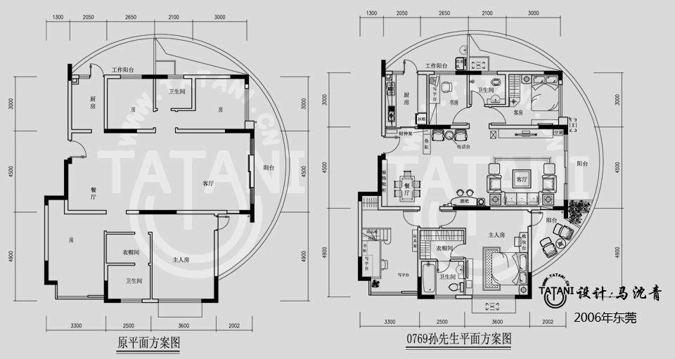 | 以上是剛從廣州到東莞做的兩套改一套,地產商樣板房的設計平面圖; |