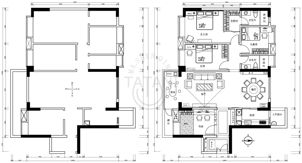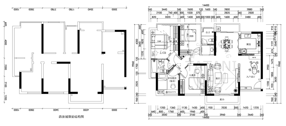 | 業(yè)主是建筑土建設計師,有一子一女,但陽臺高窗不可改動,他要求最好可以加上書房,介于廚房很窄卻砌成這樣,是因為入戶門正對廚房門,很少人會買的原因,所以這個方案一出來業(yè)主非常滿意,第一天看到方案,當天簽的; |