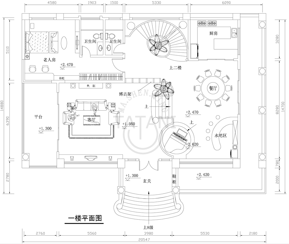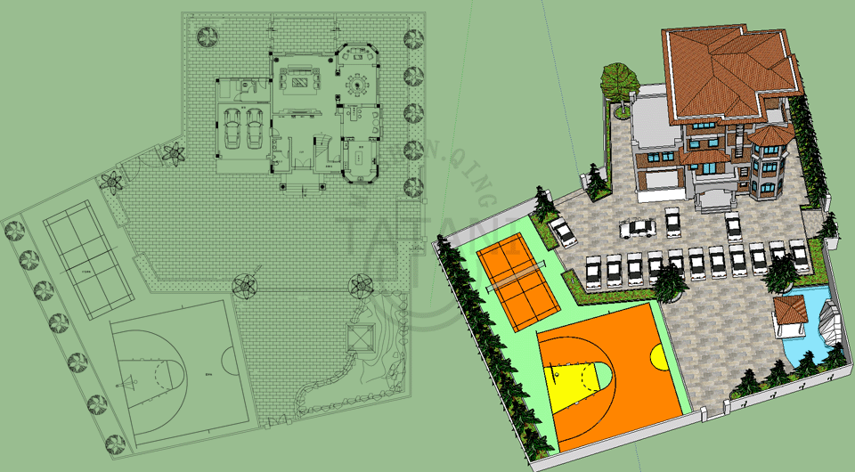 關(guān)于別墅,什么是別墅,國內(nèi)國外是有區(qū)別的,在國外只要自己擁有的是一整棟就是別墅,在國內(nèi)最開始來自開發(fā)商,獨(dú)棟、甚至連排的商品建筑,叫別墅,后來自建房參考了其設(shè)計(jì),或者設(shè)計(jì)者加入設(shè)計(jì)后,在大家眼里也成了別墅,所以除了獨(dú)棟外,只要看起來‘像別墅’就是別墅;現(xiàn)在什么是別墅,什么是民房主要是看設(shè)計(jì)的是否豪華,所以現(xiàn)在‘有錢人’的大多叫做別墅,普通人的則沒這樣叫;主要是檔次上和用詞上的問題,不用多久用詞也會(huì)跟上國外,只要獨(dú)棟就可以叫做別墅;但現(xiàn)在在國內(nèi)設(shè)計(jì)民用建筑時(shí)叫法是有區(qū)別的,自建住宅建筑的一般可分為,民宅(民樓)、別墅(花園式)、別院; 民宅(民樓):主要是不重視外觀花園(應(yīng)該說是院子),著重保持很多傳統(tǒng)的建筑觀念;別墅則重視外觀及花園;檔次最高的是別院;占地也最大,與別墅的區(qū)別是除了主建筑,還有很多附建筑,通過花園或者走廊,把這些建筑串連在一起,充分利用花園,把生活范圍擴(kuò)到主建筑以外,圍墻以內(nèi),因?yàn)樗薪ㄖ际墙M合體,不能說主建筑就是別墅,所以我把它說成是別院;當(dāng)然非傳統(tǒng)的所說的主屋以外不常住房子,因?yàn)橐郧啊畡e院’這東西,現(xiàn)在也叫別墅;屬于別墅類似的用詞,因?yàn)橥恋叵拗频汝P(guān)系,自建別墅除了要在國土部門所限制的紅線圖內(nèi),要在地區(qū)限高以內(nèi),還要熟悉或會(huì)建筑設(shè)計(jì),因?yàn)樽越▌e墅,是由一塊‘平地’開始的,另外設(shè)計(jì)還要著重考慮安全、隱私、供排系統(tǒng)的處理,及地區(qū)性風(fēng)俗習(xí)慣和風(fēng)水知識(shí);下面以個(gè)人以往從一塊地開始設(shè)計(jì)建筑,及設(shè)計(jì)室內(nèi)裝飾的部分自建別墅建筑作為例子,當(dāng)然個(gè)人非工民建或建筑結(jié)構(gòu)設(shè)計(jì)師,梁柱等,如果業(yè)主不請(qǐng)建筑公司的話,我會(huì)重新以自己的經(jīng)驗(yàn),與我們的建造師協(xié)調(diào)去設(shè)計(jì),方案圖則是對(duì)外的為的是保護(hù)自己的權(quán)益,所以方案設(shè)計(jì)不加這個(gè); |