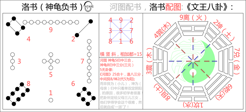 后天八卦來(lái)自洛書(shū),與河圖的關(guān)系: