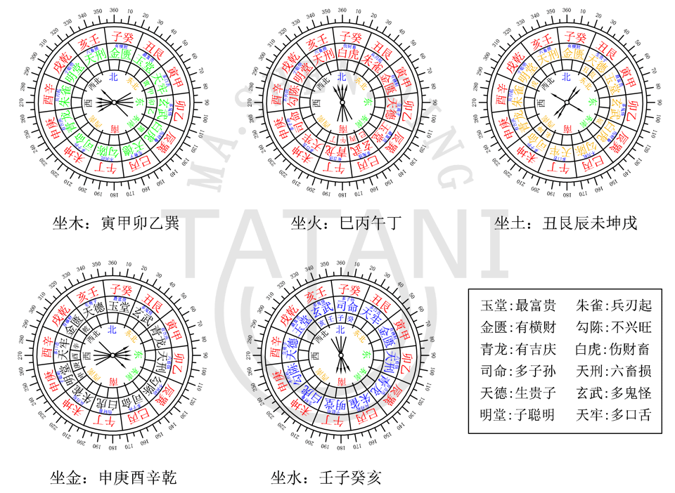 · 二十四山安灶吉兇斷: 何知人家有橫財(cái),灶安金匱上,何知人家生貴子,灶安天德上,何知人家損財(cái)畜,灶安白虎上,何知人家最富貴,灶安玉堂上,何知人家多口舌,灶安天牢上,何知人家多鬼怪,灶安玄武上,何知人家多子孫,灶安司命上,何知人家不興旺,灶安勾陳上,何知人家子聰明,灶安明堂上,何知人家兵刃起,灶安朱雀上,何知人家六畜損,灶安天刑上,何知人家有吉慶,灶安青龍上。說(shuō)解:長(zhǎng)生是金匱、沐浴是天德、冠帶是白虎、臨官是玉堂、帝旺是天牢、衰位是玄武、病位是天刑、死位是來(lái)雀、墓位是司命、絕位是勾陳、胎位是青龍、養(yǎng)位是明堂。 己丙午丁四宅: 子癸方白虎、丑艮方朱雀、甲寅方金匱、乙卯方天德、辰巽方玉堂、巳丙方玄武、午丁方青龍、未坤方天牢、申庚方司命、酉辛方勾陳、戌乾方明堂、亥壬方天刑。 申庚酉辛乾五宅: 子癸方玉堂、丑艮方玄武、甲寅方青龍、乙卯方天刑、辰巽方勾陳、己丙方司命,午丁方白虎、未坤方朱雀、申庚方明堂、酉辛方天牢、戌乾方金匱、亥壬方天德。 寅甲卯乙巽五宅: 子 癸方金匱、丑艮方玉堂、甲寅方天牢、乙卯方玄武、辰巽方白虎、巳丙方天德、午丁方勾陳、未坤方司命、申庚方青龍、酉辛方朱雀、戌乾方明堂、亥壬方天刑。 亥壬子癸四宅: 子癸方司命、丑艮方天牢、甲寅方金匱、乙卯方天刑、辰巽方青龍、巳丙方朱雀、午丁方明堂、未坤方白虎、申庚方勾陳、酉辛方天德、戌乾方玉堂、亥壬方玄武。 辰戌丑未坤艮六宅: 子癸方金匱、丑艮方天德、甲寅方玉堂、乙卯方玄武、辰巽方白虎、巳丙方勾陳、午丁方天牢、未坤方司命、申庚方青龍、酉辛方朱雀、戌乾方明堂、亥壬方天刑。 定修方灶位:按吉宅中點(diǎn)位下羅經(jīng)之法,乃選擇家第一緊要,蓋中點(diǎn)定而后方隅始定,于選灶方位及修方等事方準(zhǔn)。灶為一宅之主,養(yǎng)生所由關(guān)焉。故司命之神,視主中饋者為隆潛也,蓋中饋之所從元定而灶動(dòng)作有因,證期執(zhí)一而既施,今見時(shí)師為人選擇。言取主命之食祿,生命旺為吉、至有同一生命同日、時(shí)而作灶之家有彼吉此兇者、非由用神之各有不同乎、明因作灶之課不易擇、故將其旨剖釋,實(shí)為不吝之秘授出。希擇吉者明乎慎而取用。 解兇灶秘法:灶者,一家之主,吉兇禍福,其應(yīng)如響。何也?灶乃養(yǎng)命之原,萬(wàn)病皆由飲食而得,故灶宜安生氣、天乙、延年三吉之方,不宜兇方。兇灶莫過(guò)于五鬼,其次者六煞,誤犯此二灶者,或人口不安,或家多病疾,如求速效,將舊灶上之灰土,用凈水灑掃潔靜,逢五日送郊外,有河傾之于河,無(wú)河倒之于十字路口,另買新磚新石新土,于門主之吉方安天醫(yī)灶,能化兇煞,即刻效驗(yàn)。木灶應(yīng)三十日后,土灶應(yīng)五十日后,金灶應(yīng)四十日后,火灶應(yīng)二十日后,水灶應(yīng)六十日后,即主應(yīng)吉,或病愈,或得財(cái),子息、功名應(yīng)在三年之內(nèi)。 二十四山作灶方位吉兇 壬山丙向 丙午丁方出高官,百般星辰盡吉祥,有福之人安此灶,五男二女吉興長(zhǎng)。 未坤申方不可安,出人世代主瘟癀,不是當(dāng)頭人既死,出人半吉好推詳。 庚酉辛方受孤凄,家主出外作客亡,損妻口舌官非到,家中孤寡少年亡。 戌乾亥方出武人,富貴皆因好灶神,此灶年年田業(yè)進(jìn),家生貴子聰明人。 壬子癸方出災(zāi)殘,長(zhǎng)子退敗孤寡婦,位宜吉宿不宜兇,五鬼退敗禍相逢。 丑艮寅方最為良,家生貴子出賢良,多進(jìn)四方珍才寶,牛羊興旺有田莊。 甲卯乙方出人亡,出人孤寡守空房,長(zhǎng)男疾痛年年有,小兒外出他鄉(xiāng)亡。 辰巽巳方大吉昌,錢財(cái)布匹滿柜箱,綢緞綾羅般般有,定主富貴萬(wàn)年長(zhǎng)。 辰戌卯酉方作豬欄大吉,乾巽丑未方作牛馬欄上吉,甲丁庚癸方作雞鴨鵝位上吉。 子山午向 丙午丁方不可安,出人世代主瘟癀,不是當(dāng)頭人既死,出人半吉好推詳。 未坤申方受孤凄,家主外出作客亡,損妻口舌官非到,家中孤寡少年亡。 庚酉辛方出武人,富貴皆因好灶神,此灶年年田業(yè)進(jìn),家生貴子聰明人。 戌乾亥方有災(zāi)殃,長(zhǎng)子退敗孤寡婦,位宜吉宿不宜兇,五鬼退敗禍相逢。 壬子癸方最為良,家生貴子出賢良,多進(jìn)四方珍才寶,牛羊興旺有田莊。 丑艮寅方出人亡,出人孤寡守空房,長(zhǎng)男疾痛年年有,小兒外出他鄉(xiāng)亡。 甲卯乙方大吉昌,錢財(cái)布匹滿柜箱,綢緞綾羅般般有,定主富貴萬(wàn)年長(zhǎng)。 辰巽巳方出高官,百般星辰盡吉祥,有福之人安此灶,五男二女吉興長(zhǎng)。 子午丑未方作豬欄上吉,辰戌坤艮方作牛馬欄上吉,壬丙乙辛方作雞鴨鵝位上吉。 癸山丁向 丙午丁方不可安,出人世代主瘟癀,不是當(dāng)頭人既死,出人半吉好推詳。 未坤申方受孤凄,家主外出作客亡,損妻口舌官非到,家中孤寡少年亡。 庚酉辛方出武人,富貴皆因好灶神,此灶年年田業(yè)進(jìn),家生貴子聰明人。 戌乾亥方有災(zāi)殃,長(zhǎng)子退敗孤寡婦,位宜吉宿不宜兇,五鬼退敗禍相逢。 壬子癸方最為良,家生貴子出賢良,多進(jìn)四方珍才寶,牛羊興旺有田莊。 丑艮寅方出人亡,出人孤寡守空房,長(zhǎng)男疾痛年年有,小兒外出他鄉(xiāng)亡。 甲卯乙方大吉昌,錢財(cái)布匹滿柜箱,綢緞綾羅般般有,定主富貴萬(wàn)年長(zhǎng)。 辰巽巳方出高官,百般星辰盡