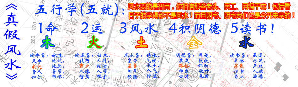 由十幾年開始,就有不少人問過我:關(guān)于網(wǎng)傳的: “一命二運(yùn)三風(fēng)水,四積功德五讀書;”六名七相八敬神,九交貴人十養(yǎng)生。十一擇業(yè)與擇偶,十二趨吉及避兇,十三逢苦要無怨,十四不固執(zhí)善惡,十五榮光因緣來;(六以上完全變味了!其實6以上網(wǎng)絡(luò)時代的產(chǎn)物!也可能是近代心機(jī)者亂撰的,并且本人可以直接定義他不懂傳統(tǒng)文化和常規(guī)的中國習(xí)俗!) 類似的東西很多,如什么《風(fēng)水十一古訓(xùn)》,我都笑死了,就幾個字而已,他們可以天天寫,又不用理出處,也不記名,就比如QQ有個風(fēng)水部落,各種天天毫無根據(jù)亂講,人家一問就讓私聊,所以我就拿公開講的雞毛蒜皮開刷,因為也是錯的,因為我拿風(fēng)水知識,來揭他的老底,他拿這個來堵我的嘴,所以我連他這個也砸了,問他出處,然后又無下文了,一問五行也說不明白,一拿他們亂說的找現(xiàn)實給他,或讓他給上現(xiàn)代的出來也沒有,就一伙人互稱大師,原因很簡單,中國人,一般正統(tǒng)的東西,過十無單數(shù),十一算什么鬼缺一門嗎?然后發(fā)現(xiàn)除了讓人家給錢,沒有一點(diǎn)用處!不準(zhǔn)任何人可以質(zhì)疑他,但凡一個認(rèn)真學(xué)過玄學(xué)的人,都不會認(rèn)為6以上是真的!很多玄學(xué)者也都出來證明6以上是假的;但謠言不是一兩句話就可以否決的! 1命2運(yùn)3風(fēng)水4積陰德5讀書,五行架構(gòu)(2、5、9為古代學(xué)者(讀書人)最常用的一種分類述事體,1、3、4、8為第二常用的架構(gòu),67相對少用,叫法‘五命’或‘五就’!是五種主要因素;玄學(xué)占比小;成敗是看五種因素互相影響的結(jié)果!這里的‘命’:玄學(xué)和意志2成+天命(包括政治、出身、相貌)8成;‘運(yùn)’:機(jī)緣2成+時局8成!風(fēng)水:玄學(xué)2成+常識8成;‘積陰德’:善心2成+禮智8成!讀書(知識):努力4成+技巧4成+天賦2成!可以看那8成的常識!所以不是有成就,就能說風(fēng)水好!有可能換任何風(fēng)水,結(jié)果都一樣!其實有沒成就,是什么成就,要看的是它們互相之間相加的結(jié)果! 如:狀元=風(fēng)水+讀書(+命+德+運(yùn)),那寄宿呢; 另一種比喻:(命)出身、(運(yùn))天時、(風(fēng)水)地利、(積陰德)人和、(讀書)技巧;五行為:木、火、土、金、水!6以上的說法,80年代以后網(wǎng)上出現(xiàn)的,查無出處,知名風(fēng)水師除了否認(rèn)其的真實性,沒人敢說到6以上!